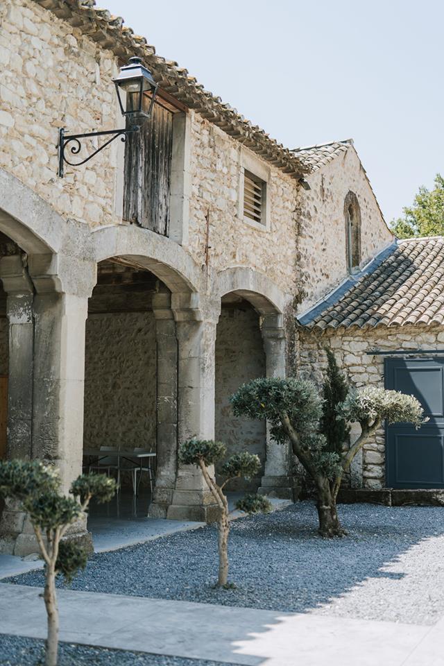 Il y a d’abord la grande salle de réception. Un espace lumineux, puissant, traversé par cette grande verrière qui laisse entrer le soleil du soir comme un véritable spectacle. Les murs en pierre rappellent les mas provençaux, la hauteur sous plafond donne une respiration rare, et l’ensemble dégage ce mélange subtil entre élégance et authenticité.