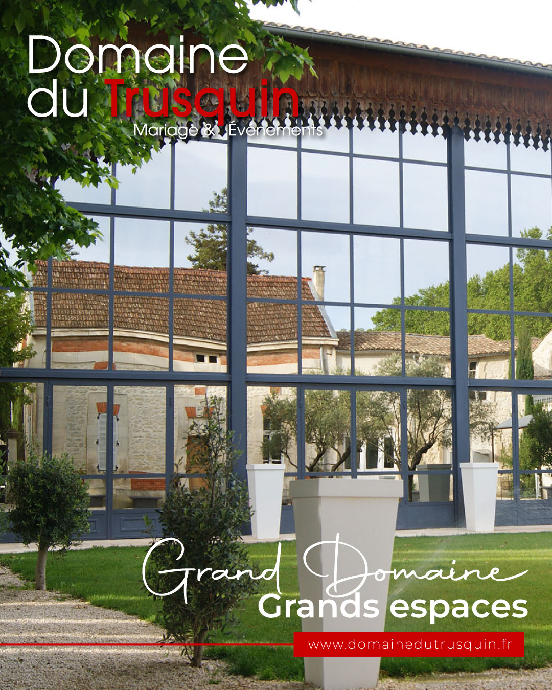 Futurs mariés 2026, trouvez la salle de réception de grande capacité qu’il vous faut pour votre union. Le Domaine du Trusquin, c’est un domaine entier de mariage avec de multiples services sur place vous permettant de vivre un moment exceptionnel avec tous vos invités. Notre domaine de mariage est situé